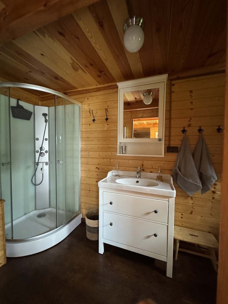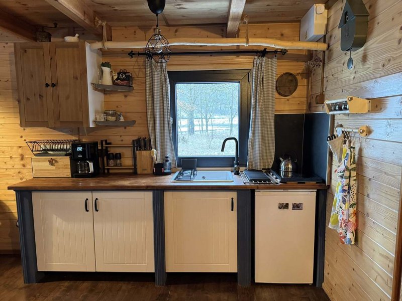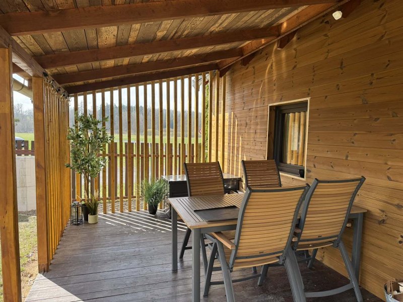 Celodřevěná chata s pergolou se nachází v Jihočeském kraji u města Blatná, uprostřed polí a u rybníka. Na jeho břehu člověk dokáže vypnout a opravdu si tak odpočinout. Každý rok se snažíme vybudovat něco nového, tedy žádný rok nebude stejný.
