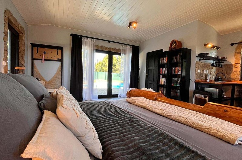Objevte klidný úkryt v srdci přírody. Naše stylová chata Inari zasazená mezi vzrostlé smrky nabízí maximální soukromí, designový interiér a soukromý bazén jen pro vás. Ideální místo pro romantický víkend nebo tichý reset mysli a těla. Uvnitř naleznete královskou postel z masivu, luxusní ložní prádlo, deky a polštáře pro ten nejpohodlnější spánek, moderně vybavený kuchyňský kout, velkou televizi aj. Večery si můžete vychutnat na stylové terase s kamennou dlažbou, kde na vás čeká soukromý bazén, vířivka s podsvícením, komfortní venkovní posezení a gril pro gurmánské večery pod hvězdami. Vše zasazené v naprostém soukromí na oploceném pozemku, obklopené přírodou.