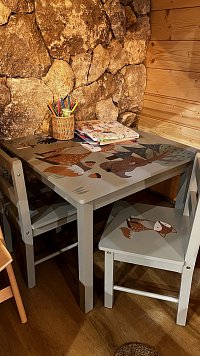 Chata s celoročnou prevádzkou poskytuje ubytovanie pre 7 až 9 hostí.