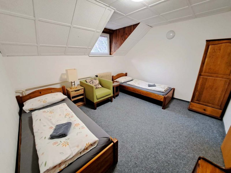 Penzion v obci Jiřetín pod Jedlovou: 9 pokojů, max. 29 osob. Orientační cena (za osobu za noc): celoročně 450kč.