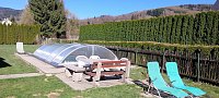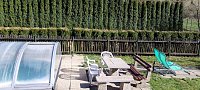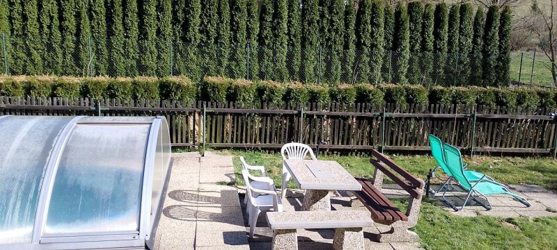 Chata s nadstandardním vybavením letním zastřešeným bazénem, trampolínou, ping pongovým stolem, infrasaunou a novou vířivkou uvnitř objektu, volejbalovou sítí venkovním bet. grilem a ohništěm s posezením a špicemi a s nádherným výhledem na hřeben Jeseníků k Pradědu a Dl. Stráně.