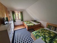 Chalupa v obci Sedloňov: 7 ložnic, celkem pro 6 až 14 osob. Orientační cena (chalupa za týden): léto 42.000kč, zima 32.000kč.