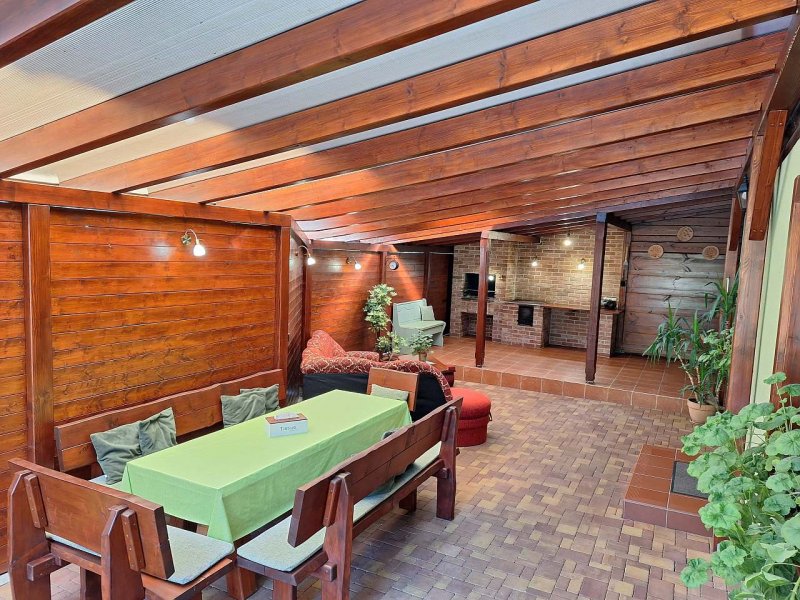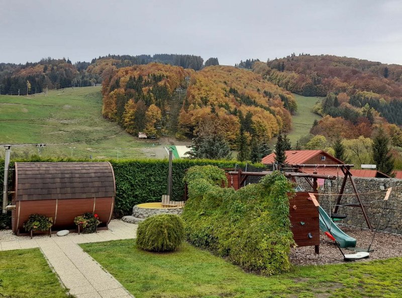 Chata Katka - rodinná chata je situovaná v prekrásnom horskom prostredí Nízkych Tatier, v pokojnej okrajovej časti obce Mýto pod Ďumbierom - pod Chopkom. Vynikajúca poloha chaty uprostred krásnej prírody v kombinácii so zabezpečeným vysokým komfortom ubytovania je zárukou dovolenky plnej relaxu a oddychu, ako aj bohatých možností turistiky i športového vyžitia. Či už sa rozhodnete Vašu dovolenku tráviť turistickými prechádzkami, vysokohorskými túrami, jazdou na koni alebo na lyžiach, po príchode sa budete môcť vždy zrelaxovať v kúpacej kadi a sudovej saune nachádzajúcej sa priamo v záhradnej časti ubytovania. Celoročne Vám ponúkame komfortné ubytovanie v štýlovo zariadenej chate s celkovou kapacitou pre 16 osôb (14 + 2 prístelky), priam ideálne pre jednu väčšiu partiu hostí (rodina, priatelia, známi, športoví nadšenci). Chata disponuje dvoma obývacími miestnosťami s krásnymi krbovými kachľami, plochou obrazovkou televízora so satelitným príjmom, CD a DVD prehrávačom s rádiom a spoločenskými hrami. Gauče, ktoré sa tu nachádzajú, slúžia ako prístelky pre štyri osoby. Plne vybavené dve kuchyne (keramická varná doska s rúrou, mikrovlnná rúra, rýchlovarná kanvica, chladnička s mrazničkou, hriankovač, umývačka riadu a jedálenské posedenie) využijete na prípravu svojich obľúbených jedál. K Chate Katka patrí krásne upravená záhrada, sudová sauna a kúpacia kaďa, ktorá je v letnom období využiteľná ako bazén. Pripravený je tu pre Vás altánok s grilom, ohnisko, ako i krytá terasa s možnosťou posedenia pod kvetmi zarastenou pergolou. Vaše ratolesti môžete nechať vyšantiť sa v detskom kútiku s hojdačkou, šmýkačkou či pieskoviskom s hračkami. Ak ste si náhodou nedoniesli vlastné bicykle, radi Vám ich zapožičiame. Samozrejme sa postaráme aj o úschovu Vašich bicyklov či lyží. Nech už sa rozhodnete pre akýkoľvek typ dovolenky a ktorékoľvek ročné obdobie, veríme, že v Chate Katka budete nadmieru spokojní. Už teraz sa na Vás tešíme!