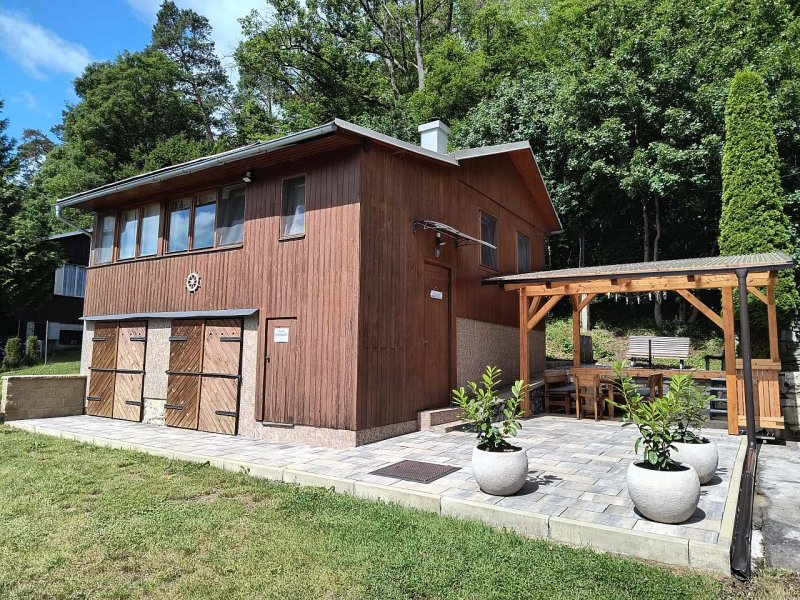 Parkování přímo před chatou, místa pro 3 auta, v přízemí je sklep, kde je možno nechat rybářské vybavení, kola či motorky. Vchod do obytné části chaty po schodech. Z chaty je výhled na zříceninu hradu Cornštejn. Na hrad Bítov lze dojít pěšky lesní cestou za cca 15min. Hned vedle chaty se nachází restaurace.