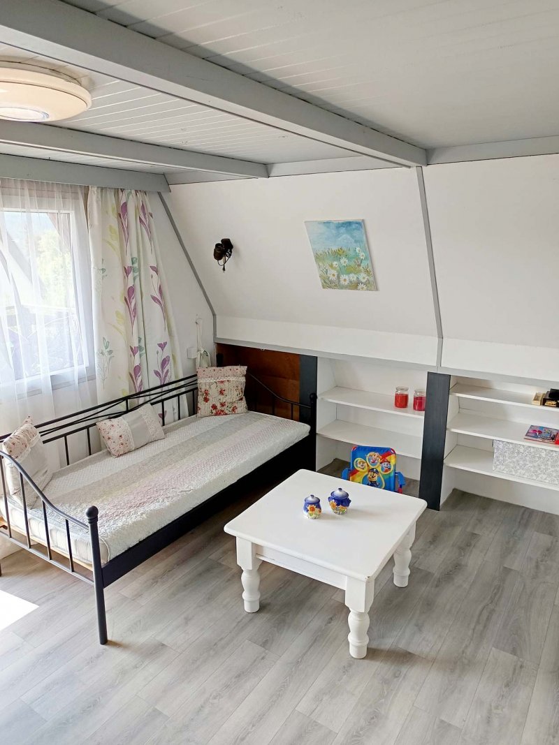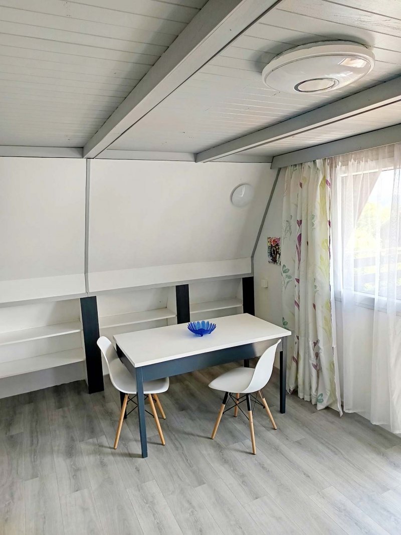 Chata samotná nabízí útulné a praktické zázemí pro celou rodinu nebo dva páry. Čeká vás plně vybavená kuchyň, ve které zvládnete připravit cokoliv od rychlé snídaně po večeři při západu slunce. Večer si můžete odpočinout u krbových kamen, které dodají atmosféru i teplo po aktivním dni. Posedět si také můžete na terase, která se s nádherným výhledem na jezero stane vaším oblíbeným místem.