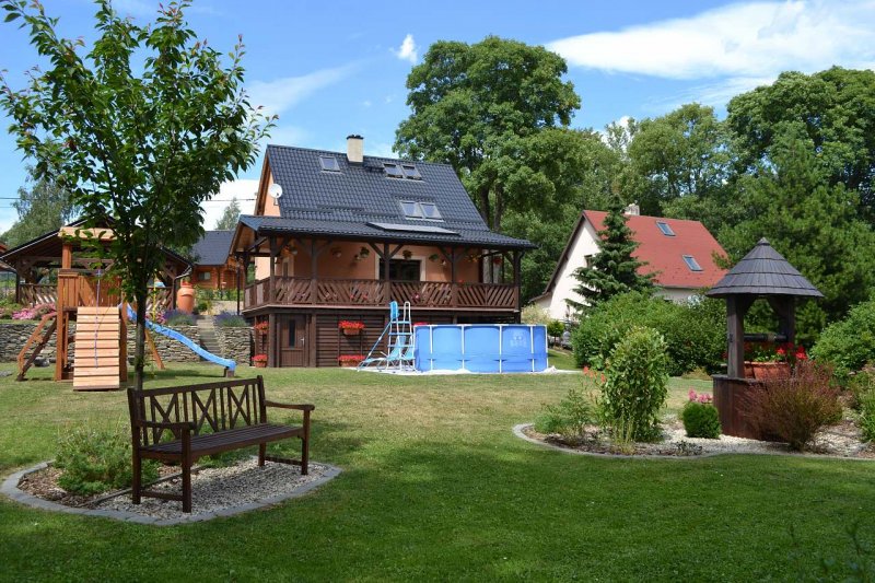 Chata v obci Nová Pláň: 2 ložnice, celkem pro 1 až 5 osob. Orientační cena (chata za noc): léto 3.700kč, zima 3.100kč.