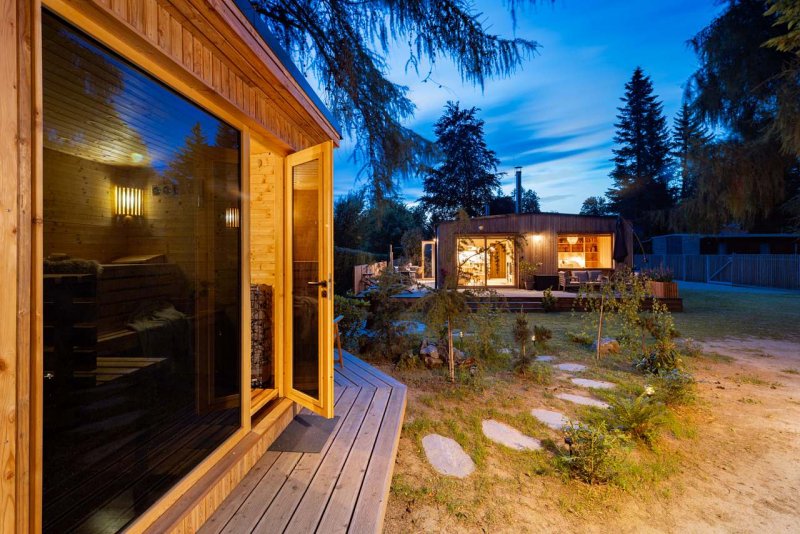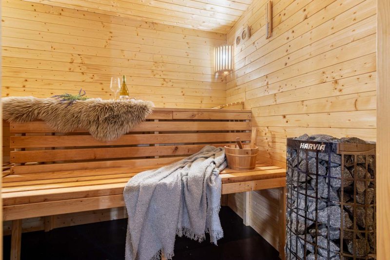 Venkovní finská sauna k dispozici hostům za poplatek.