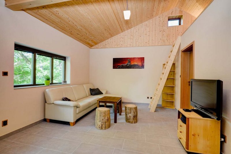 Chata v obci Ivančice: 3 ložnice, celkem pro 10 až 18 osob. Orientační cena (chata za noc): léto 9.000kč, zima 10.000kč.