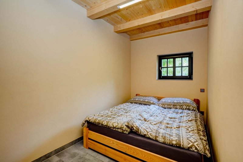 Chata v obci Brno Bystrc: 3 ložnice, celkem pro 2 až 6 osob. Orientační cena (chata za týden): léto 17.500kč, zima 18.750kč.