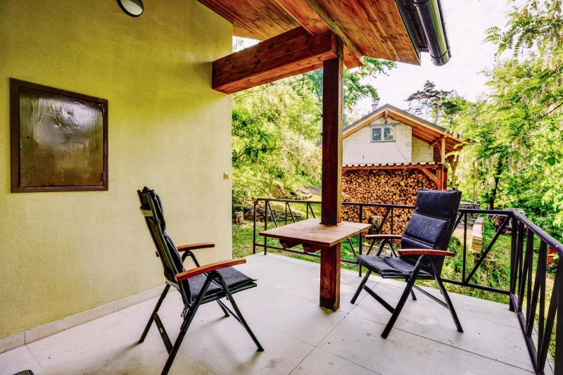 Vila v obci Popůvky u Brna: 2 ložnice, celkem pro 2 až 5 osob. Orientační cena (vila za noc): léto 8.500kč, zima 7.000kč.