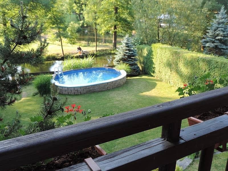 Tato zděná chata s prostornou terasou se nachází nad říčkou v blízkosti chráněné krajinné oblasti Nový rybník. Možnost RYBAŘENÍ přímo na pozemku (loď k dispozici zdarma) nebo řece Lužnici 500m. Cca 4km pískovny Roudná, kde je též možnost rybaření. Okolní příroda je vhodná od jara do podzimu k pěší i cyklo - turistice. Oplocený pozemek cca 500m2 (soukromí Vám zajišťují vzrostlé thuje), s udržovanou zahradou, bazénem o rozměru 5,6x3,2x1,2 m a zastřešenou pergolou s krbem a grilem.