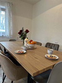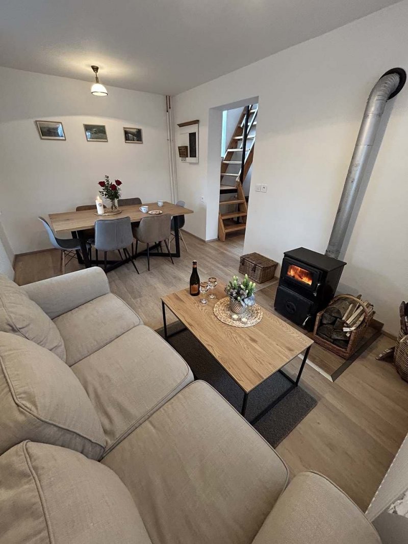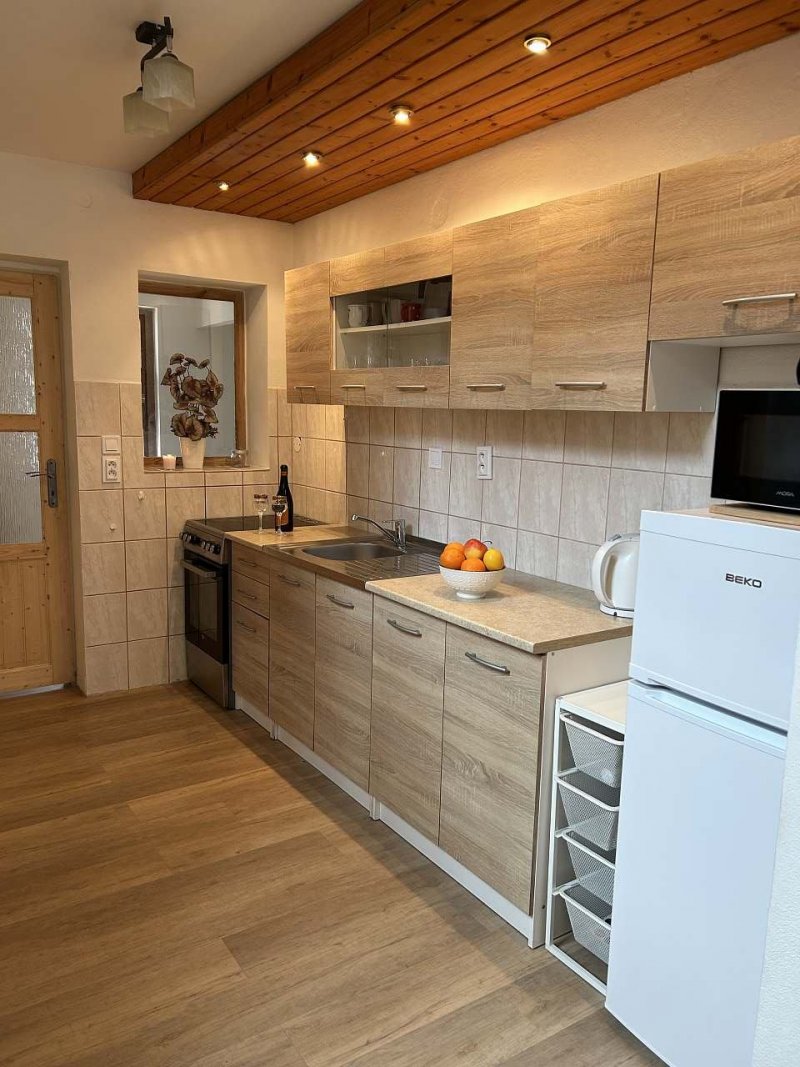 Domek v Javorné na Šumavě byl celý zrekonstruován a vybaven novým nábytkem i kuchyní. Ranní kávu si vychutnáte na zastřešené terase s výhledem na zahradu a jehličnaté stromy. Spodní branka zahrady sousedí s lesem, stačí vzít do ruky košík a za chvíli máte nasbírané houby k obědu.