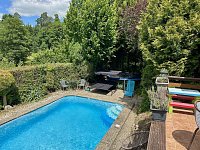 Pronájem malebné Chaty Novak v jižních Čechách, vhodné pro rodiny s dětmi. Velký bazén, krytá pergola s krbem, terasa, trampolína, Wi - FI. Chata Novak je situována v přírodě s výhledem na nedaleký les. Venku je možné v horké letní dny posezení pod pergolou, kde je příjemný chládek anebo je možné trávit klidné okamžiky na slunečné terase s výhledem na les, který se nachází nedaleko. Pod pergolou je umístěn venkovní krb. Z pergoly se schází po 4 schodech k zapuštěnému bazénu (cca 6,5x4,2), kde se nacházejí lehátka a zahradní křesílka. Chata Novak disponuje 3 ložnicemi a vlastní kuchyňkou s veškerým zázemím pro fungování celé rodiny.