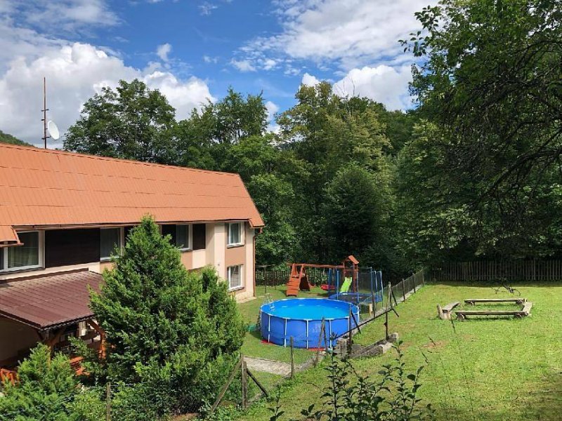 Objekt chaty je určen pro 20 osob a je rozdělen na přízemí a první patro. V prvním patře se nachází 6 pokojů, 2x koupelna a 4x WC. V přízemí se nachází velká společenská místnost, prostorná vybavená kuchyň s jídelnou, kde najdete vše potřebné k vaření, 2 x WC a technické místnosti. Venku je k dispozici zastřešená pergola s grilem a venkovní ohniště. Venkovní bazén. Nyní nově k dispozici koupací sud. Vše připraveno pro Vaší pohodu a rekreaci s přáteli. Objekt je vhodný i pro firemní a teambuildingové akce a rodinné oslavy.