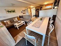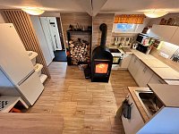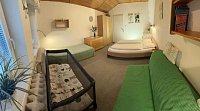 Vnitřní vybavení chaty je přizpůsobeno rodinám s dětmi (dětská cestovní postýlka, zábrany vstupu na schodiště, jídelní stolička, kryty zásuvek, hračky, deskové hry, stoleček s židličkami, nočník).