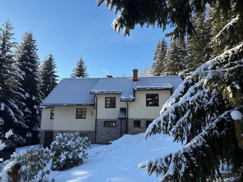 Hledáte odpočinek, soukromí na okraji lesa a relaxaci ve vyhřáté sauně nebo luxusní vířivce s výhledem na Stezku v oblacích a protější sjezdovky? Pak jste na správném místě.