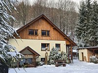 Chata v obci Kouty nad Desnou: 5 ložnic, celkem pro 8 až 22 osob. Orientační cena (za osobu za noc): léto 380kč, zima 450kč.