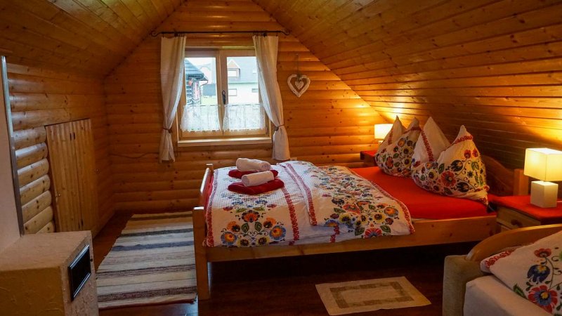 Srub v obci Ždiar: 1 ložnice, celkem pro 1 až 5 osob. Orientační cena (srub za noc): celoročně 110kč.