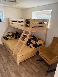 Chata v obci Kněždub: 3 ložnice, max. 9 osob. Orientační cena (chata za týden): léto 20.000kč.