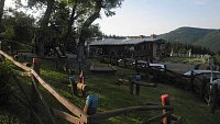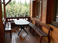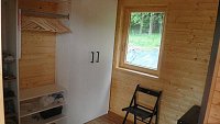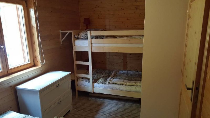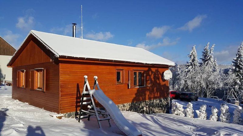 Nově postavená domě - přízemní dřevostavba o rozloze 80 m2 pro 10 osob. Objekt je umístěn vedle parkoviště a malé sportovní haly asi 10 m od lesa. Dům má tři ložnice, obývací pokoj spojený s kuchyní, předsíň a místnost pro ukladání lyží nebo kol. Wi - fi připojení zdarma. Krytá venkovní terasa. Hřiště pro děti - pískoviště, malá klouzačka, houpačka.