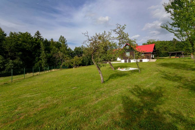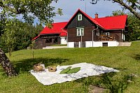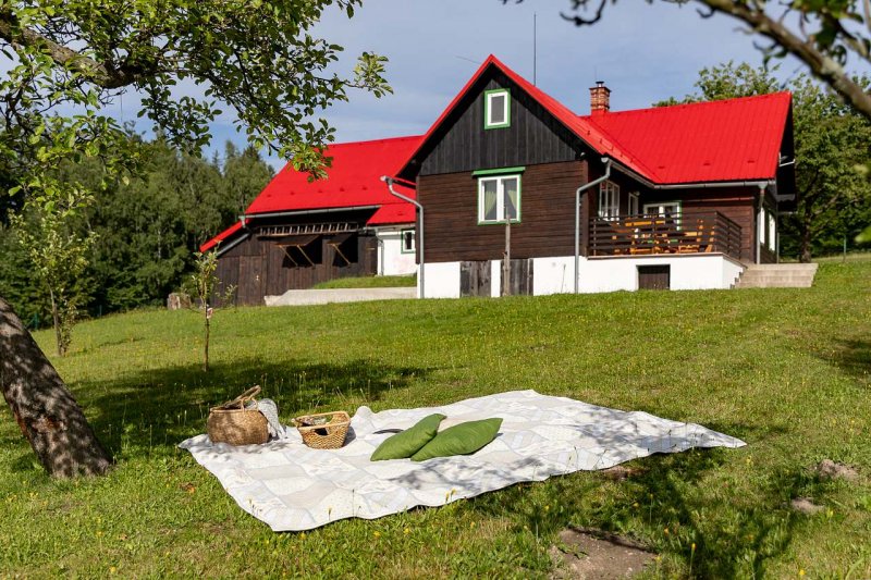 Místo, které si zamilujete. Velká chata, kde si každý najde svůj kout, přesto útulně a prakticky zařízena. Nachazí se téměř na úplné samotě s velkou oplocenou zahradou a rozlehlými pozemky Vám zajistí dostatek soukromí. Najdete tady klid, ticho a propojení s krajinou, naopak děti budou mít kde vyběhnout a zabavit se venku na hřišti, v lese i na chatě,
