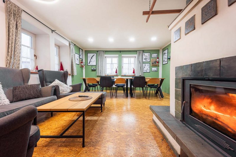 Prostorná rodinná chata v Černém Dole. V chatě je několik nově zrekonstuovaných pokojů, koupelen, toalet, prostorná nová kuchyně, pokoj s pecí a dále herna s fotbálkem a kulečníkem. K relaxaci je v domě vířivka - sundance spa - a sauna, venkovní krytá terasa s krbem a posezením. Malá oplocená zahrada před domem s dětským hřištěm, bazénem. Kolárnou a lyžárnou vedle parkoviště. Nechybí tady ani TV a Wi - Fi.