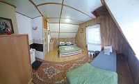 Chata v obci Tatranská Štrba: 4 ložnice, celkem pro 4 až 8 osob. Orientační cena (chata za noc): léto 130kč, zima 120kč.