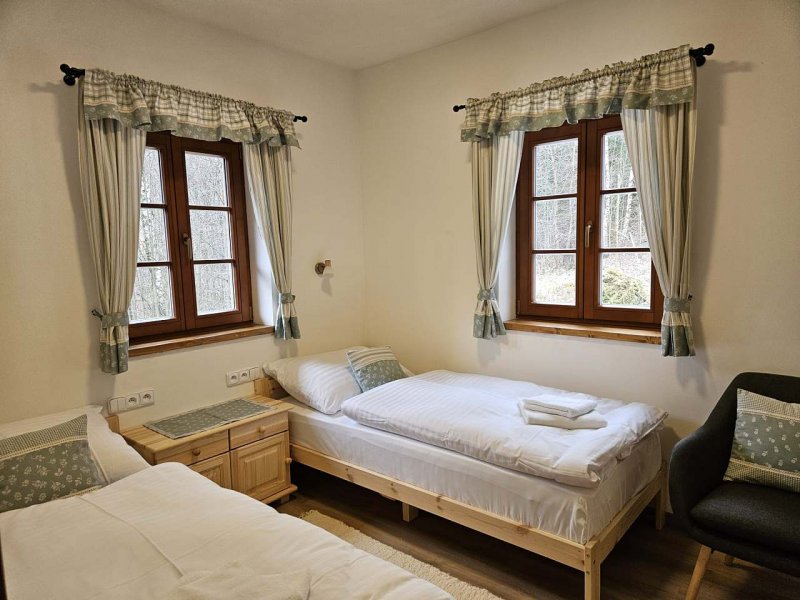 Chalupa v obci Lubno: 1 ložnice, celkem pro 2 až 4 osoby. Orientační cena (za osobu za noc): celoročně 440kč.