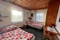 Chata v obci Tatranská Štrba: 3 ložnice, celkem pro 2 až 8 osob. Orientační cena (chata za noc): léto 160kč, zima 165kč.