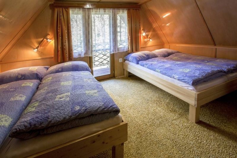 Chata v obci Pribylina: 2 ložnice, celkem pro 2 až 7 osob. Orientační cena (za osobu za noc): léto 24kč, zima 29kč.