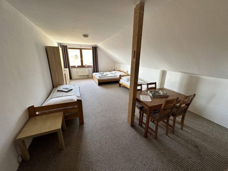 Penzion v obci Kunčice: 7 pokojů, celkem pro 1 až 18 osob. Orientační cena (za apartmán za týden): léto 11.200kč, zima 12.600kč.