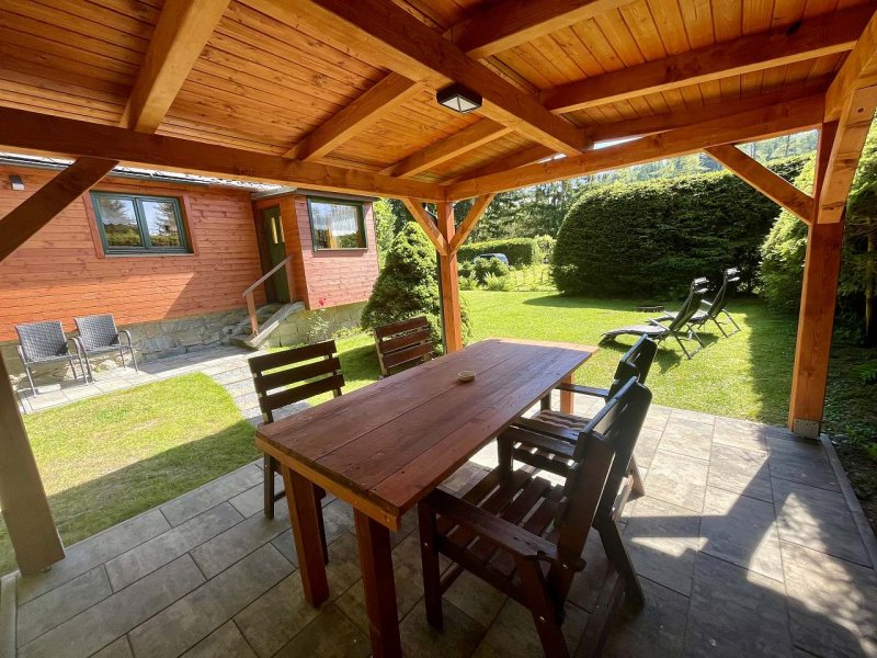 Chata pro maximálně 5 osob se nachází 2 km od Větrného Jeníkova, 13 km od Jihlavy. Podél chaty protéká potok z rybníku Trojan, který je vzdálen od chaty 200 m a slouží ke koupání. Chata se nachází v bezprostřední blízkosti lesa. Voda v objektu pouze užitková, pitná voda v nedaleké studánce cca 150 m. Pro hosty je připraveno kryté venkovní posezení pod pergolou + lehátka, ohniště a gril. Pro uskladnění kol je možno využít garáž. Pozemek chaty je ze dvou stran oplocen živým plotem.