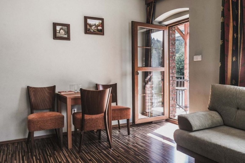 Chata nabízí 8 samostatných moderně vybavené apartmány v kategorii *** SUPERIOR s celkovou kapacitou až 37 osob – ideální volba pro větší skupiny přátel, či rodin. Pro váš pohodlný spánek jsou všechny postele vyrobeny z masivu a opatřeny speciálními ortopedickými matracemi s tvrdostí T3 (středně tvrdá). Každý apartmán disponuje obývací místností, které jsou vybaveny televizí, stolem s židlemi a velkým pohodlným gaučem, který po rozložení představuje dvě plnohodnotná lůžka vyrobená na zakázku a určená pro celoroční spaní. Všechny prostory chaty jsou nekuřácké, mají vlastní sociální zařízení a pro klidné posezení můžete využít i zimní zahradu v prvním patře. Chata disponuje i vyhřívanou lyžárnu s vysoušeči bot.