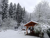 Nově zrekonstruovaná chata s venkovním koupacím sudem s hydromasážními tryskami, která svou polohou na polosamotě u lesa zaručuje klidný pobyt na relaxačním místě s velkou zahradou, na které můžete využít krytou pergolu s dřevěným zahradním nábytkem a grilem, ruské kuželky, trampolínu, pingpongový stůl, houpačku nebo použít některou s venkovních her. Uvnitř chaty je herna s fotbálkem.