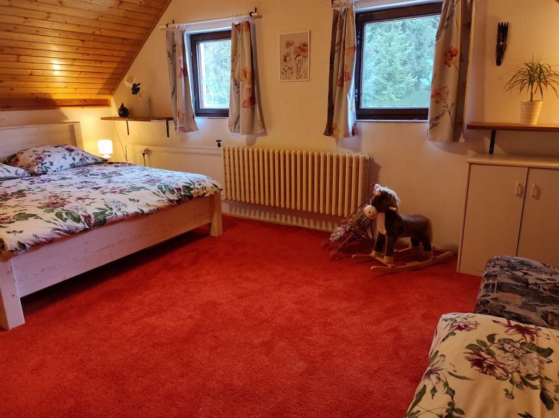 Věříme, že si to u nás s dětmi užijete :-) Chata je jak druhý domov, je bohatě vybavená včetně všeho potřebného pro malé děti (postýlky, jídelní židličky.. ) až po postele z masivu s kvalitními matracemi. Pestré zázemí venku na zahradě tak i uvnitř. Venku je k dispozici: trampolína, klouzačka, houpačky, dětský domeček, pískoviště, plno hraček nejen na písek, odrážedla, bosonohý chodníček... Ohniště a gril s krytým posezením pro dospělé i pro děti.