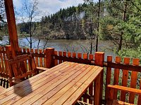 Chata U okouna nabízí přímý přístup k vodě. Je podsklepená, což poskytuje prostor pro uschování rybářského náčiní, kol a dalších věcí. K dispozici je také prostorná terasa, odkud si můžete vychutnávat nádherný výhled na přehradu, okolní stromy a skály.