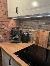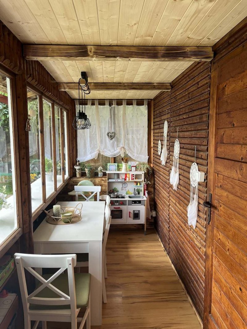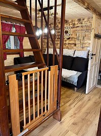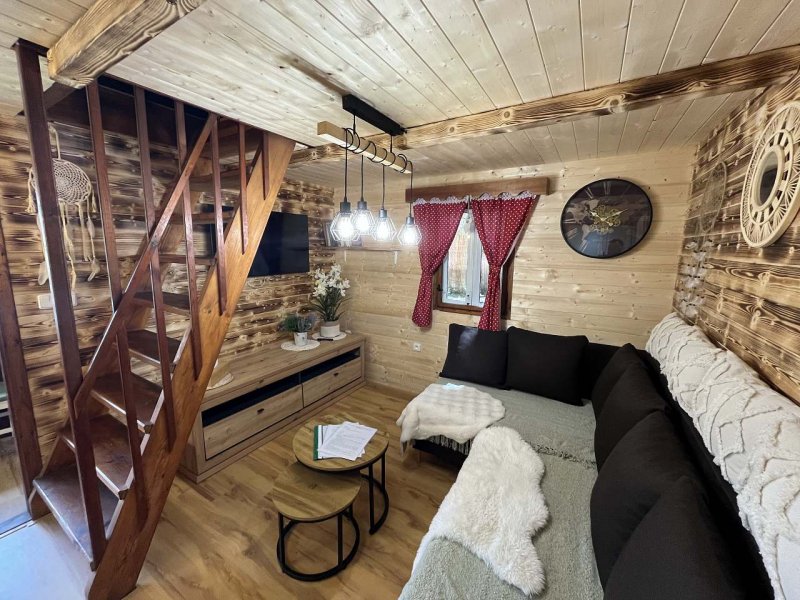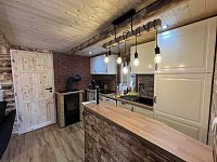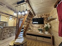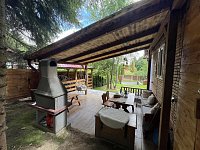Ubytovaní je vhodné jak pro romanticky wellness, tak pobyt s dětmi. Na zahradě se dále nachází bazén, trampolína, ohniště s posezením a dětský domek s kuchyňkou a pískovištěm. Dětské hřiště se skluzavkou a houpačkami. U Chaty je prostorná pergola s TV, krbem. Na zahradě je vířivý wellness sud. V chatě je plně vybavená stylová kuchyň s myčkou a vším co je potřeba. Obývací pokoj s krbem, rozkládací sedačkou. Na verandě se nachází jídelní stůl, malý dětský koutek. V koupelně se nachází sprchový kout, WC a pračka. V podkroví je malý průchozí pokoj s dvěma postelemi a TV na pohádky. Dále je v podkroví ložnice s manželskou postelí.