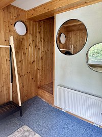Chata v obci Komorní Lhotka: 2 ložnice, celkem pro 1 až 5 osob. Orientační cena (chata za noc): celoročně 5.000kč.