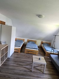 Chata v obci Nové Veselí: 2 ložnice, celkem pro 1 až 8 osob. Orientační cena (chata za noc): léto 7.000kč, zima 5.000kč.