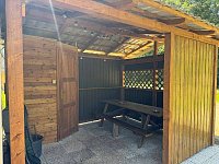 Uvnitř chaty najdete prostorný společenský prostor s velkým pohodlným gaučem, elektrickým krbem pro navození útulné atmosféry a výběrem společenských her pro zábavné večery. K chatě náleží i zastřešená pergola s venkovním posezením a toaletou – ideální pro grilování nebo večerní relax. Jen pár kroků od chaty si můžete užít ohniště, kde vznikají ty nejlepší letní vzpomínky. Kolem chaty Poseidon najdete hlavně lesy, klid a pohodu. Žádní rušiví sousedé. Můžete si tak užít nerušený pobyt v přírodě, jak má být. K dispozici pouze vaší skupině a nikdo jiný ve vašem termínu vás otravovat nebude.