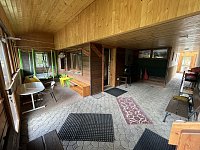 Venkovní prostory: oplocená zahrada (bez vstupní brány), za plotem je louka a les, zahradní nábytek, 2x tenisový stůl, kuželky, dětská věž se skluzavkou a houpačkami, pískoviště, dětský domeček, hřiště na míčové hry, další vlastní hřiště na tenis a míčové hry 200 m od chaty, krytý bazén s filtrací, hloubka 1,2 m, v provozu od 15.6.- 10.9.,