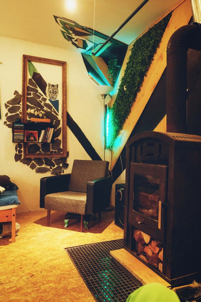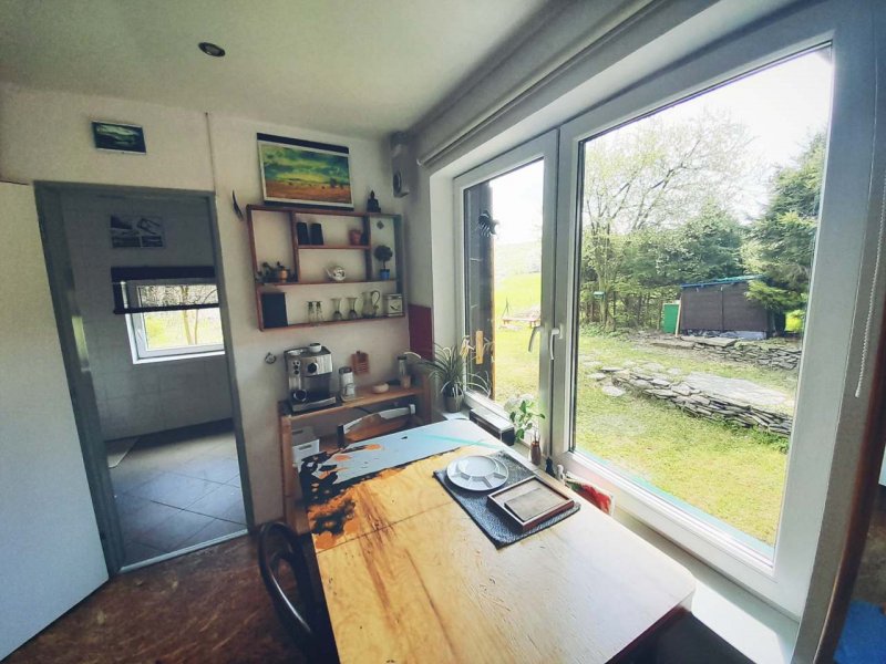 Chata je u cesty ale přitom místem se soukromím. Je takřka celá obrostlá živým plotem. Uvnitř je stylizována (vyhrál jsem si s každým detailem. ) A také je vybavena snad vším co do kuchyně je zapotřebí. Spí se u postele u krbu a nebo rozkládacím gauči. Má také půdu kde se dá spát. Půda je nízká se spoustou matrací. Chata má zahradní rovnou travnatou plochu, lavičky, rozkládací židle a ohniště. V oblasti Jesenická turistika - spoustu krásných míst.
