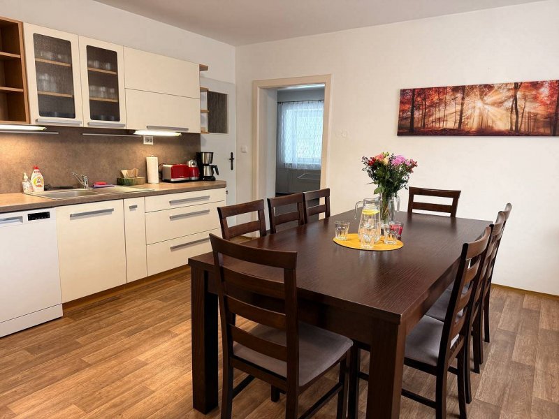 Objekt byl postaven ve 20.letech 20.století a sloužil jako hospodářská usedlost s řeznictvím. V posledních letech prošel rozsáhlou rekonstrukcí. Je členěn do dvou pater, kdy v každém patře je kromě pokojů i prostorná plně vybavená kuchyň a koupelna. Objekt je svou velikostí vhodný pro 3 rodiny s dětmi. K domu náleží velká udržovaná oplocená zahrada s venkovními hračkami. V domě je dispozici dětský hrací koutek a je možnost využití dvou dětských jídelních židliček.