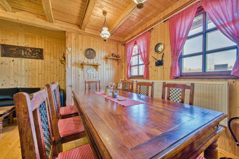 Celodřevěná velká chata ve stylu roubenky, kolaudovaná v květnu 2022 jako rodinný dům. V podkroví se nachází dva samostatné pokoje. V jednom pokoji je manželská postel a pohovka s přistýlkou vhodná pro dvě děti. V druhém jsou tři samostatné postele se vstupem na balkón. V přízemí se nachází obývací pokoj s jídelnou, kuchyň, 1x koupelna se společnou toaletou, třetí pokoj, ve kterém jsou dvě postele a jedna palanda, samostatné WC a sprchový kout. Novinka Sauna pro min 6osob. Za chatou je možnost využití prostorné zastřešené terasy s grilem a úschovny kol, lyží. Chaloupka je umístěna v klidné a zalesněné části vesničky Vernéřov, která je údolím mezi Horními a Dolními Pasekami vzdálená cca 2 km od města Aš. Možnost parkování přímo u chaty. okolí nabízí příjemné prostředí i pro kratší procházky. Třeba ke sportovnímu vrchu Háj a k ašské rozhledně (2,3 km), nebo k pramenu v Dolních Pasekách (2,4 km). Možností k příjemným zážitkům je v okolí mnoho stejně tak výletům do nedalekých lázeňských měst.