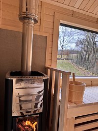 A úplně nová sauna. K vířivce i sauně jak samozřejmostí župany a osušky.