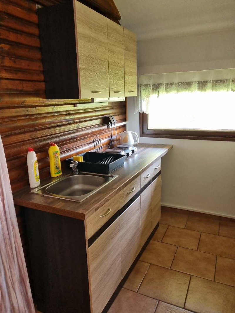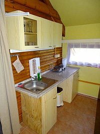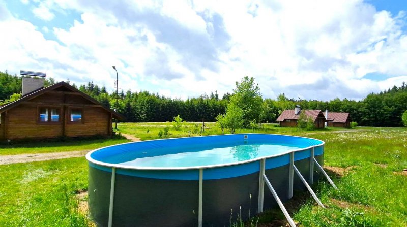 Chaty jsou dřevěné o velikosti cca 40 m2 s kapacitou 4 - 6 osob (4 pevná lůžka a rozkládací sedačka). U každé chaty je ohniště a posezení. Za chatami je pergola pro společné posezení větší skupiny. K dispozici je travnaté hřiště na volejbal. Pro děti trampolína a houpačka.
