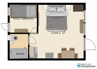 Chata v obci Doksy - Staré Splavy: 1 ložnice, celkem pro 1 až 4 osoby. Orientační cena (chata za týden): léto 11.900kč, zima 10.500kč.