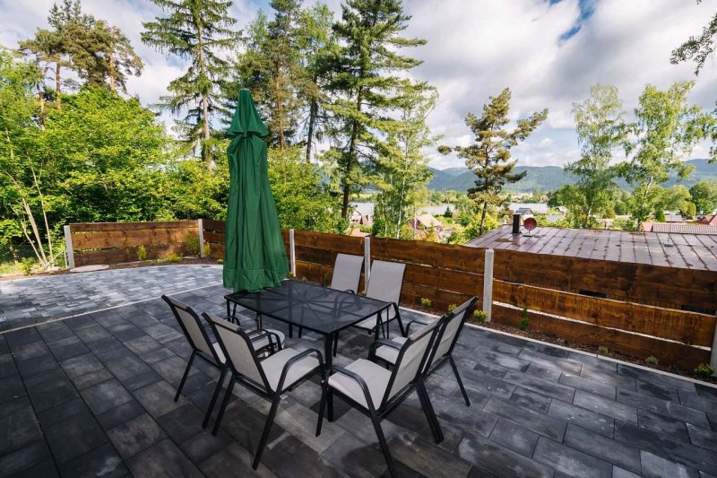 Chaty Velas jsou dva stylové domky s výhledem na lesy ve Velkém Rybníku. Naše dvě nově postavené chaty k pronájmu u Velkého Rybníka jsou identické rozlohou i vybavením, liší se pouze barevným laděním. Každý domek nabízí: Kapacitu až 6 osob. 3 samostatné ložnice. Prostorný obývací pokoj s plně vybavenou kuchyní. Koupelnu, předsíň a vlastní terasu. Kvalitní přírodní materiály a moderní interiér. Chaty jsou přízemní, s přímým vstupem do přírody. Z terasy se můžete kochat panoramatickým výhledem na rybník a okolní kopce. Samozřejmostí je bezplatné parkování a uzamykatelný prostor pro kola či lyže.