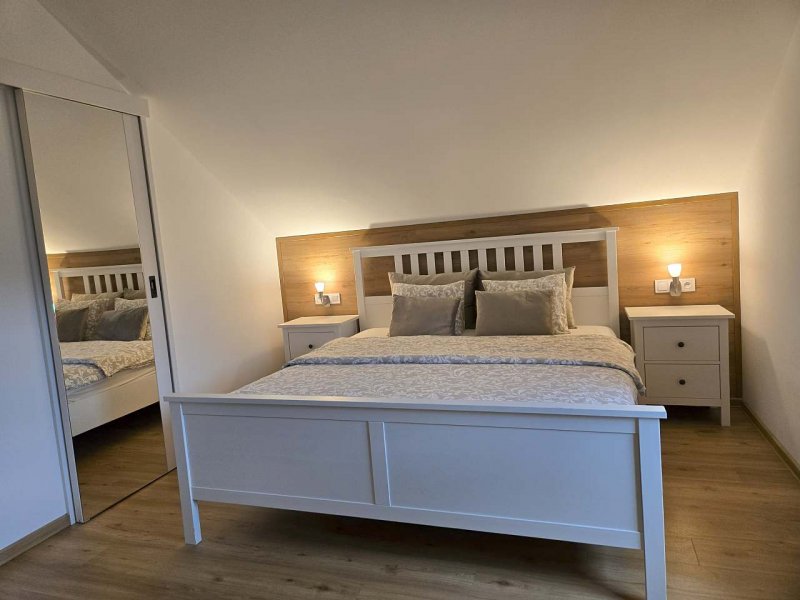 Apartmán v obci Velké Losiny: 2 ložnice, celkem pro 1 až 5 osob. Orientační cena (apartmán za noc): celoročně 2.500kč.