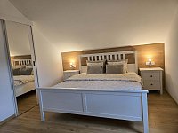 Apartmán v obci Velké Losiny: 3 ložnice, celkem pro 3 až 8 osob. Orientační cena (za osobu za noc): celoročně 600kč.